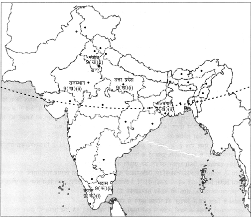 9. भारत का एक राजनीतिक नक्शा लीजिए (जिसमें राज्यों की सीमाएँ दिखाई गई हों) और उसमें निम्नलिखित को चिह्नित कीजिए: